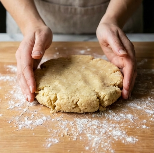 With the mixer on low, gradually add the flour, mixing just until the dough comes together and no dry streaks remain. Do not overmix. Shape the dough into a disk, wrap in plastic, and refrigerate for at least 1 hour.