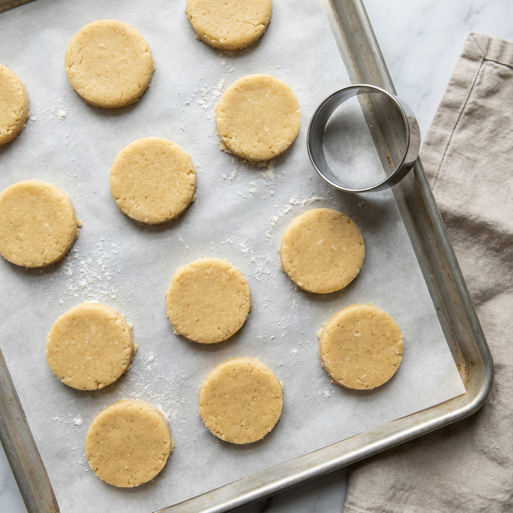 Preheat oven to 350°F (175°C). Line baking sheets with parchment paper. On a lightly floured surface, roll the chilled dough to ¼-inch thickness. Use a 2-inch round cutter to cut out cookies. Place them 1 inch apart on the baking sheets. Bake for 10-12 minutes, until set but not browned. Let cool on the sheet for 5 minutes, then transfer to a wire rack to cool completely.