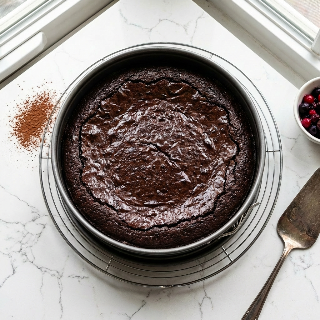 Preheat oven to 350°F (175°C). Generously grease and flour a 9- or 10-inch springform or round cake pan (or a Bundt pan). Pour the batter into the prepared pan. Bake for 45-55 minutes (or 50-60 for a Bundt), until a skewer inserted into the center comes out clean. The top will be dark and springy. Let the cake cool completely in the pan on a wire rack before frosting.