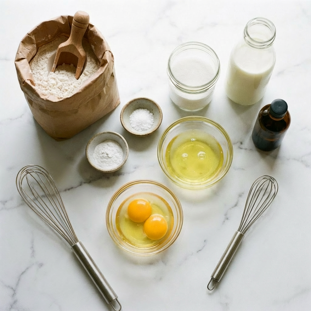 1. The Baked & Slightly Cooled Sponge Cake: Preheat oven to 350°F (175°C). Grease and flour a 9×13-inch baking pan. Sift together flour, baking powder, and salt. In a large bowl, beat egg yolks with ¾ cup sugar until pale and thick. Beat in milk and vanilla. Fold in dry ingredients.