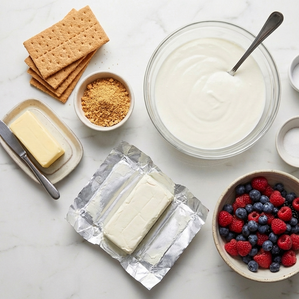 The key to perfect Greek yogurt cheesecake is choosing the right yogurt and the right technique. Use full-fat Greek yogurt. Non-fat yogurt contains too much water and can make your cheesecake watery or grainy. Full-fat Greek yogurt is thick, creamy, and behaves much more like cream cheese.