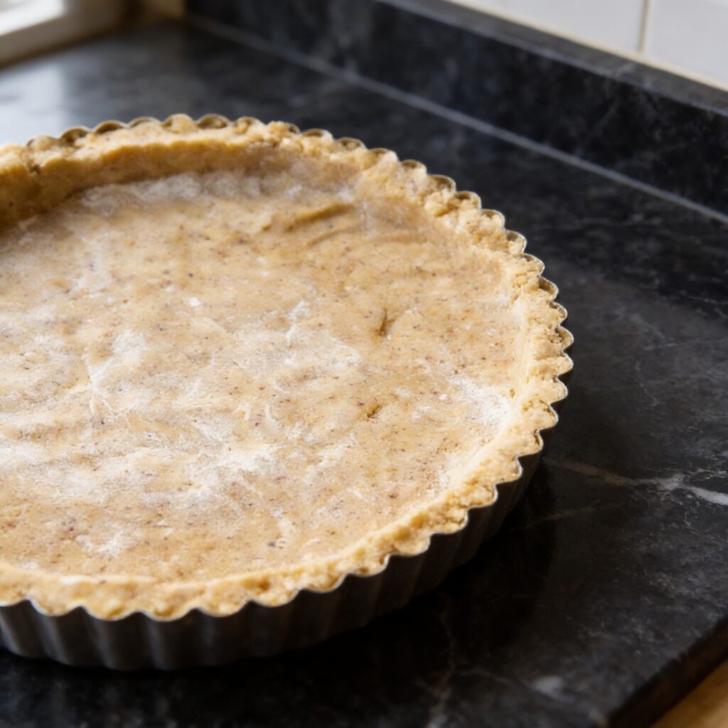 Preheat your oven to 375°F (190°C). Roll out the chilled dough on a lightly floured surface and fit into a 9-inch tart pan with a removable bottom. Trim the edges. Prick the bottom all over with a fork.