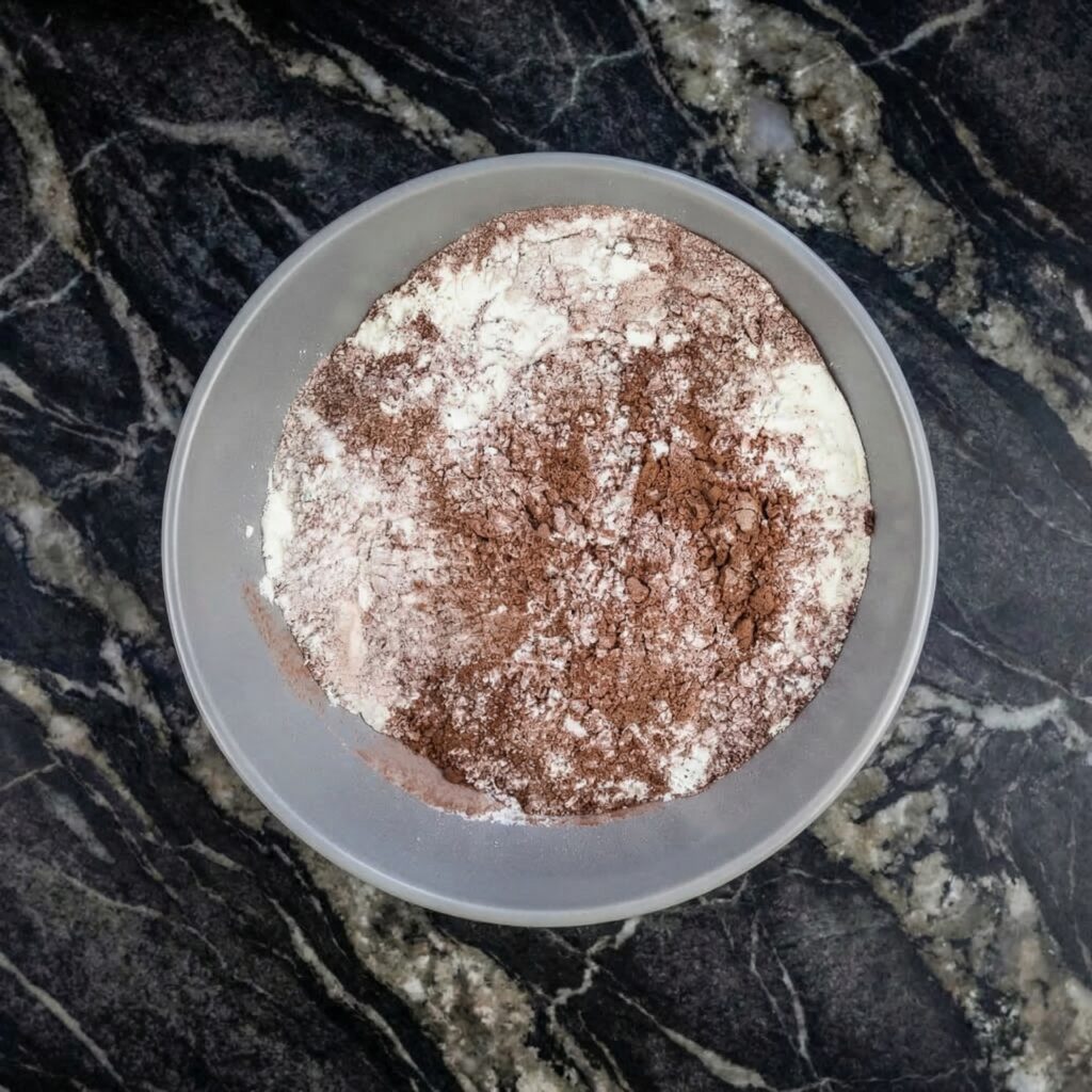 In a separate bowl, whisk together the flour, cocoa powder, baking powder, and salt.