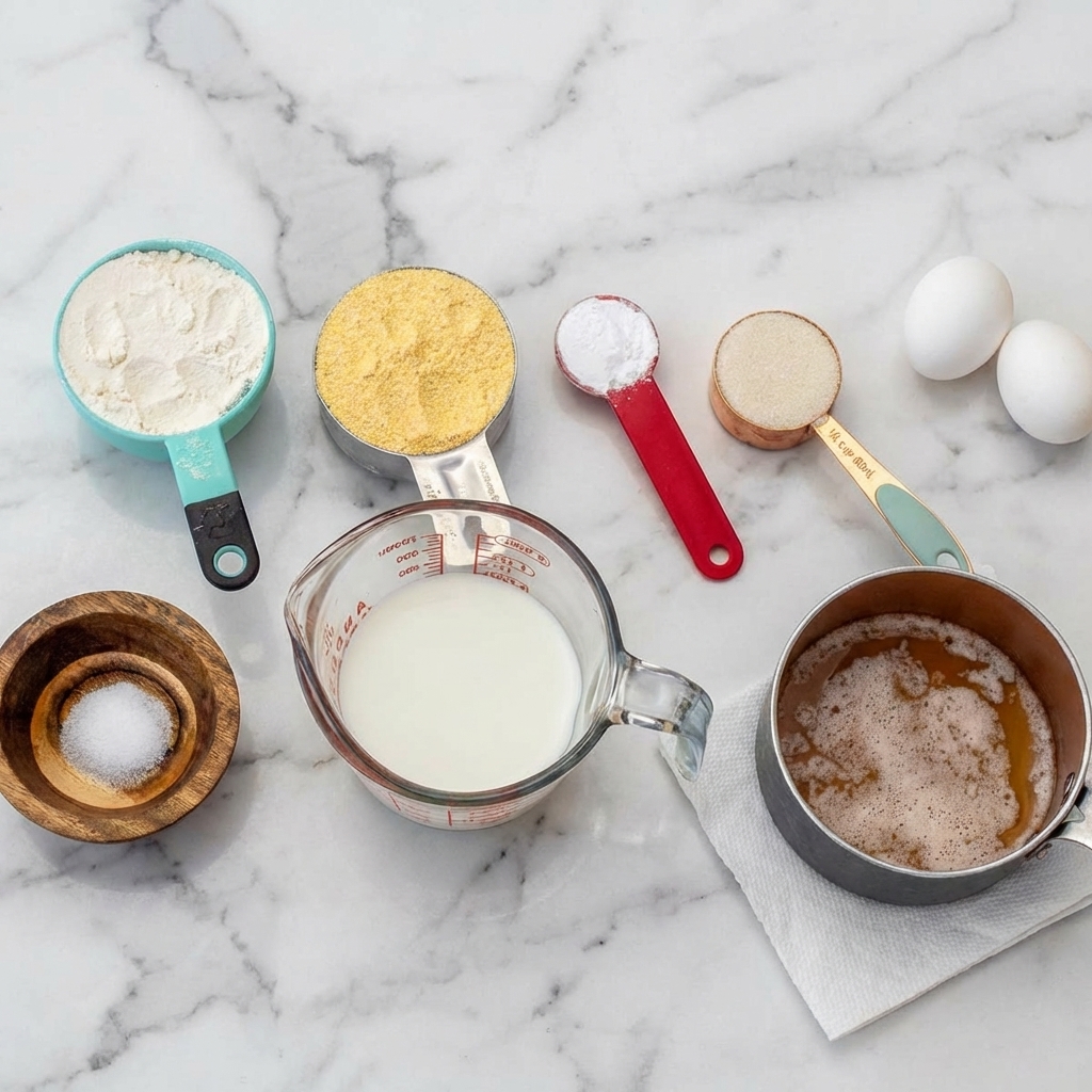 The combination of cornmeal and flour provides structure and texture; cornmeal for gritty, authentic heartiness, and flour for a tender, cake-like lift. The buttermilk serves a dual purpose: its acidity tenderizes the gluten, ensuring a soft crumb, and it reacts with the baking soda to produce carbon dioxide for a light, airy texture.