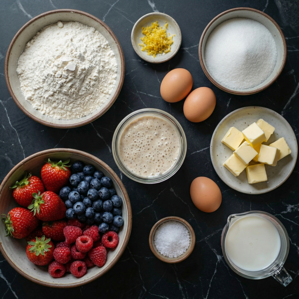 With its flaky, tangy crust and vibrant, juicy berry filling, this Sourdough Berry Pie is perfect for any occasion. It’s rustic yet elegant, easy to make with pantry staples, and bursting with fresh berry flavor. Every slice offers a perfect bite of buttery crust, sweet-tart fruit, and subtle sourdough tang—a dessert that’s as visually stunning as it is delicious.