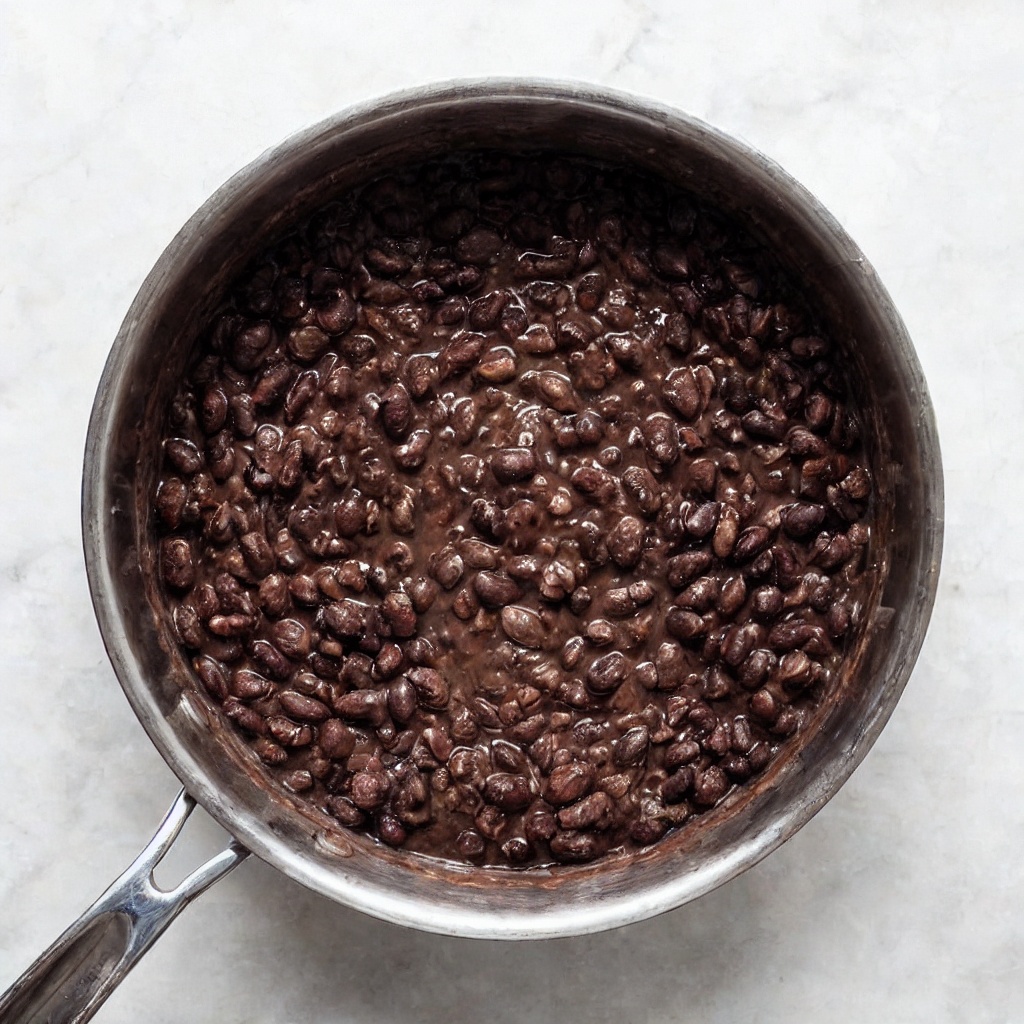 Pour in the water or vegetable broth. Bring to a simmer and cook for 5-7 minutes, mashing some of the beans with the back of a spoon for a creamier texture. You want a thick, flavorful bean mixture, not soupy. Season with salt and pepper to taste. Remove from heat and cover to keep warm.